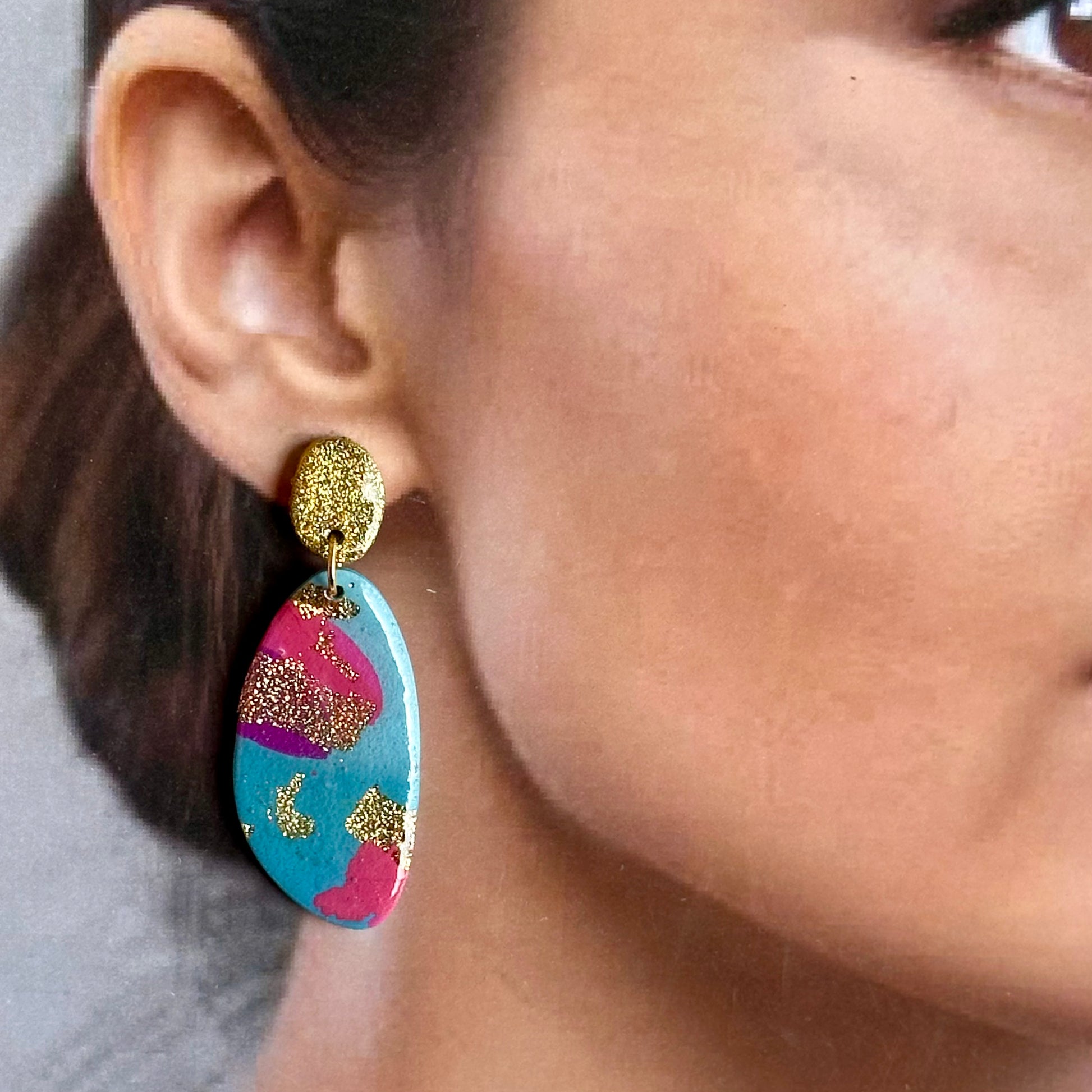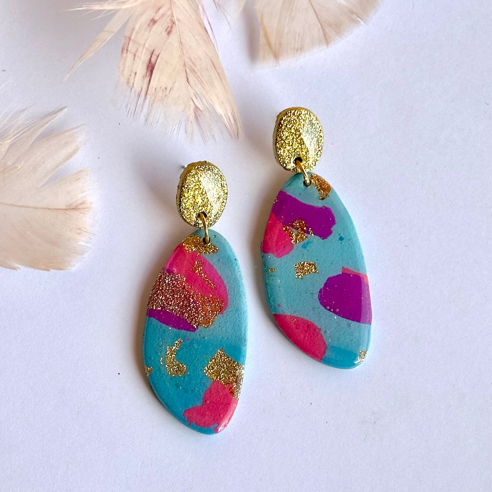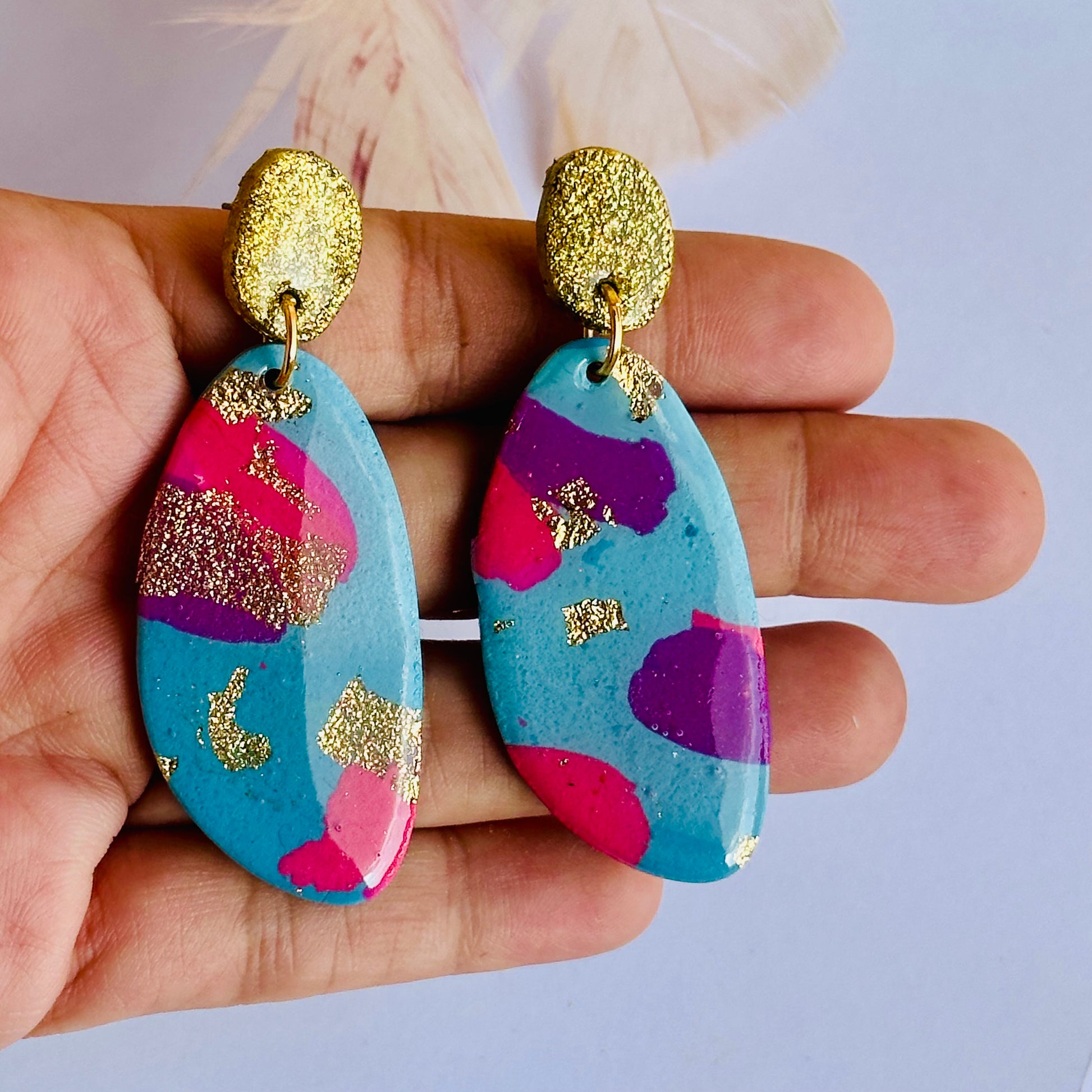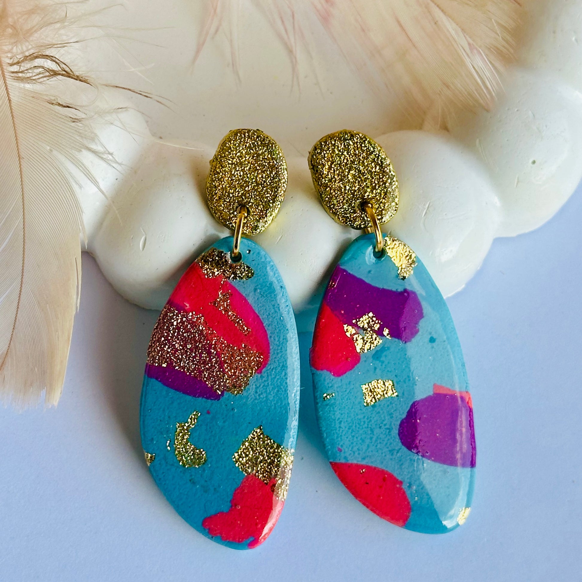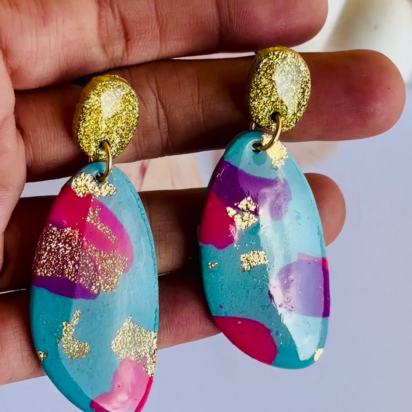 Experience true feminine elegance with Arwa's handmade earrings. With a delicate design and a captivating blend of colors, these earrings feature genuine gold leaf accents for a touch of shimmer. Make a statement and elevate any outfit with the beauty and sophistication of Arwa.