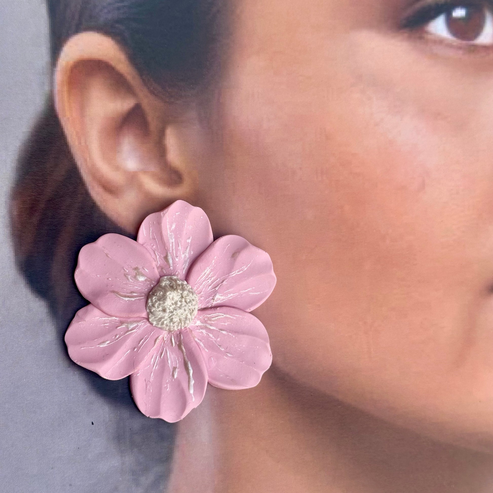 Pinky is a handcrafted stud earring in a delicate pink rose shape, made with precision and care. Add a touch of elegance to your style with this unique and beautiful accessory.